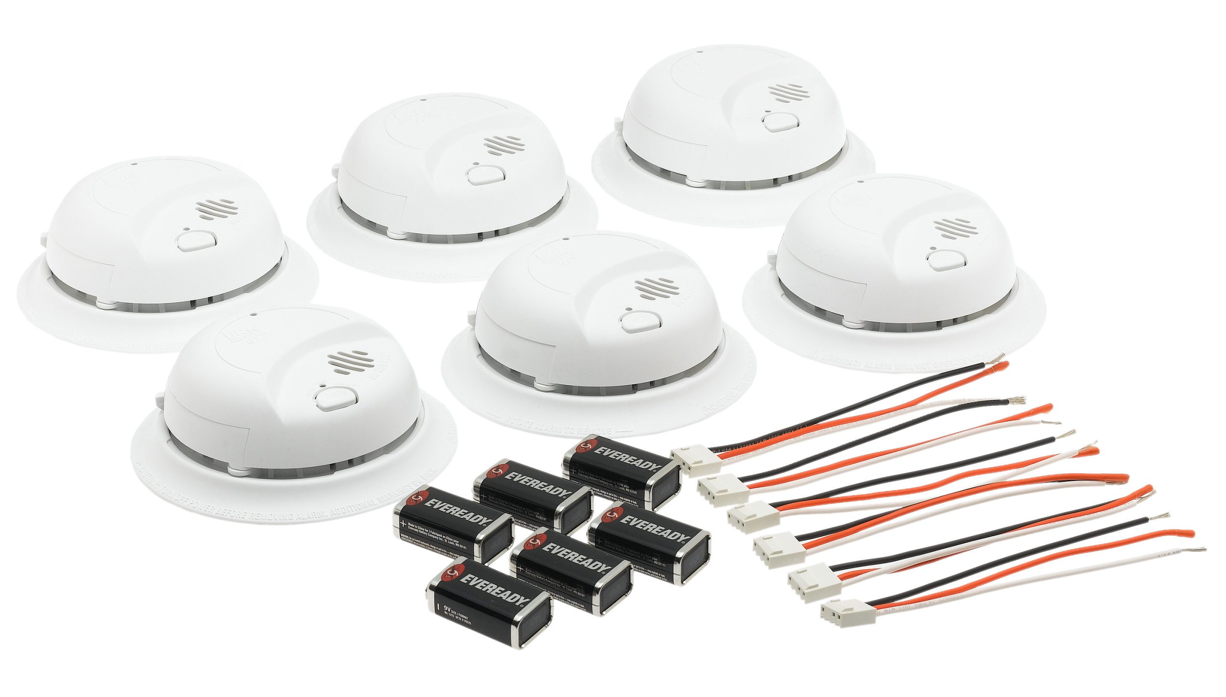 Hardwired and wireless interconnected smoke alarms.