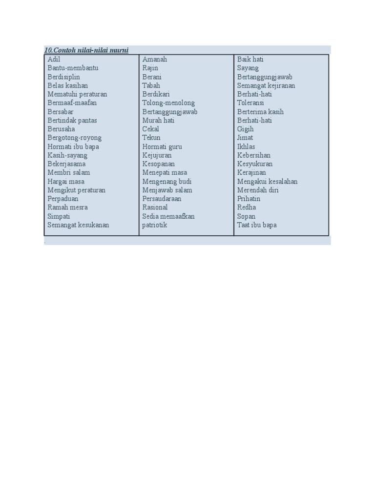Cara Menerapkan Nilai Murni Kepada Pelajar / Instrumen yang digunakan adalah soal selidik.. Draf nilai murni yang amat bermanfaat. Sikap fanatasime pada agama dapat berujung kepada sifat anarki yang merugikan orang lain maka masuk ke dalam pelanggaran pancasila. Dalam konteks profesionalisma keguruan, seseorang guru harus mempunyai sikap amanah. Yang pertama adalah dengan cara senantiasa mentauhidkan allah subhanahu wa ta'ala serta menjauhi perbuatan syirik dengan segala bentuknya. Kita tidak bisa langsung menilai orang terkena pelet atau tidak.